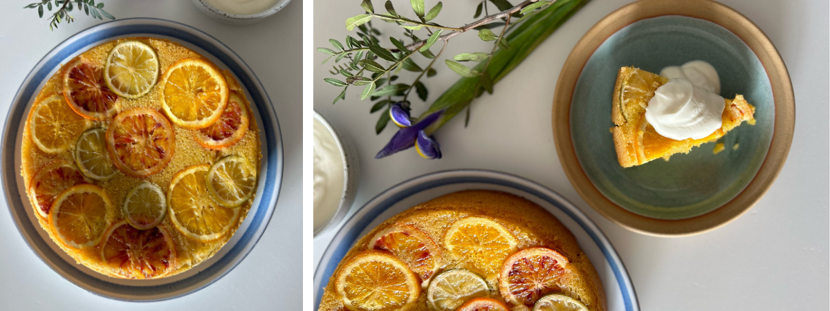 Upside down almond, polenta and citrus cake